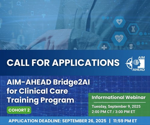 This informational webinar is designed for those interested in applying to Cohort 2 of the AIM-AHEAD Bridge2AI for Clinical Care Training Program. It will provide a high-level overview of the program, key details, and the application process and requirements. Program leads will be available to answer questions and share resources to help potential applicants determine if the program aligns with their research interests and career goals. This webinar will also include a dedicated Q&A period at the end of the session.